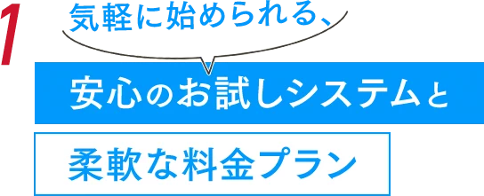 理由1:気軽に始められる安心のお試しシステムと柔軟な料金プラン